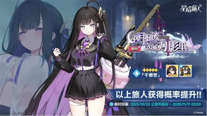 随着公测正式开启,《星塔旅人》也为准备了一系列丰富的游戏内容和活动。旅人招募卡池【夜月倾流 闪烁刀影里】于10月20日限时开启,全新5星旅人【千都世】获得限时招募概率提升。千都世是一名自视为“刀”,踏上寻觅“持刀人”旅途的奇异少女,她与魔王大人在千塔之城因一面之缘,一饭之恩而结下奇妙情愫。作为先锋定位的水属性角色,她的迅猛刀术、水蛇术式与灵活的身法,可在战场上大放异彩。