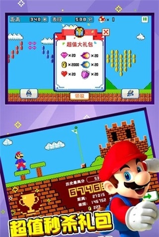 超级玛丽酷跑是根据我们最经典热血动漫超级玛丽改编而来的动作酷跑冒险挑战手游,一起致敬我们儿时的经典回忆,还是原来熟悉的味道,欢迎大家来免费加入哦。