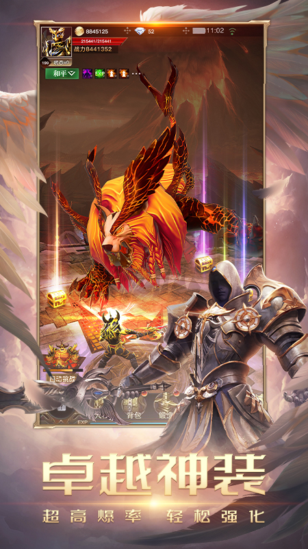 装备超高爆率,一键挂机,暴打BOSS,轻松护肝,神装入手就是这么简单。随机副本,多种玩法,告别无聊的刷刷刷,一起来开动脑筋,挑战极速通关!