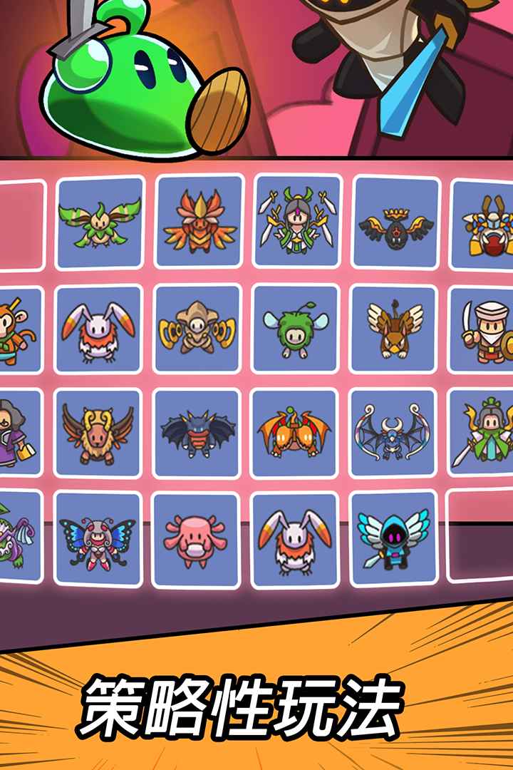 热门肉鸽塔防游戏。平静的怪兽森林被讨厌的英雄入侵了! 成为英勇无敌的大魔王,守护森林的和平吧! 合并你的小怪兽! 设置你最喜欢的阵容! 保护你的城堡! 防御所有的入侵者!
