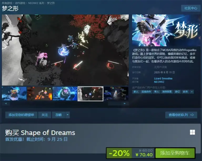 韩国独游团队Lizard Smoothie融合MOBA游戏特色打造的差异化Rougelike游戏《梦之形》现已正式在Steam发售,国区首发折扣价70.4元。