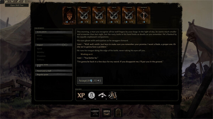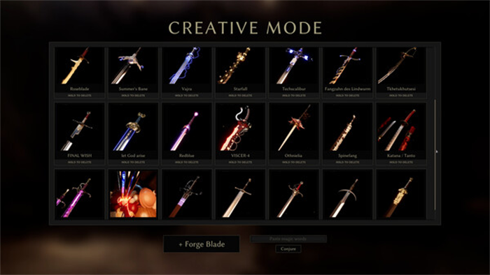 作为一名初出茅庐的锻剑师,你将抵达人类最后的避难所之一——“艾伦要塞”,肩负为营地铸造兵刃的使命。亦或是进入自由度极高的创意模式(Creative Mode),在这里你将拥有完整的锻造工坊,使用庞大的剑刃零件库、工具、雕刻与材料,尽情发挥创意。