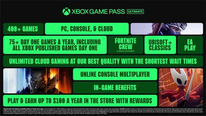 含Ubisoft+ Classics和EA Play,11月起还将加入《堡垒之夜》会员(需订阅Game Pass Ultimate)