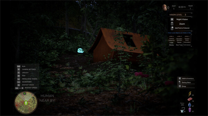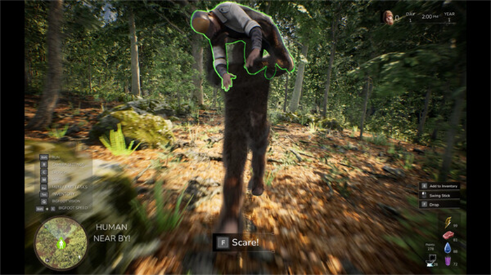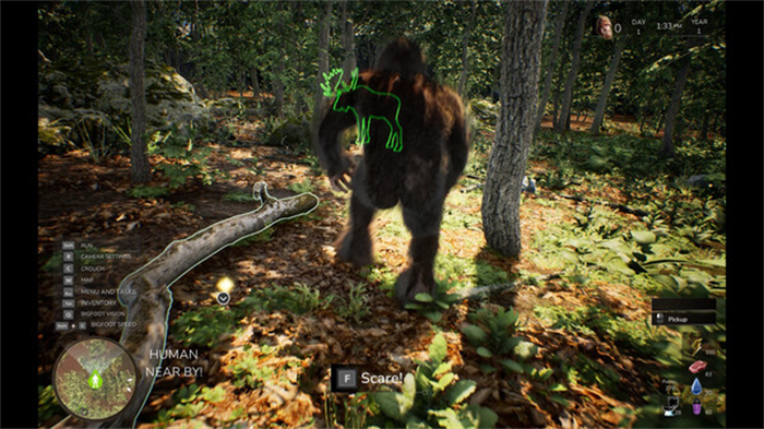 过折断树枝和吓唬野生动物来获得额外积分。获得新的大脚怪技能,如大脚怪视觉、速度、攀爬和迷雾。小心人类大脚怪猎人。他们会试图找到你并给你拍照。偷走他们的物品来获得积分并完成任务。