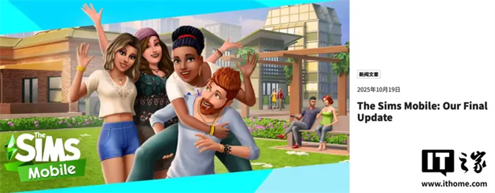 EA 宣布将在 2026 年(明年)初正式关闭《模拟人生:移动版(The Sims Mobile)》,为这款推出近八年的手游画上句号。