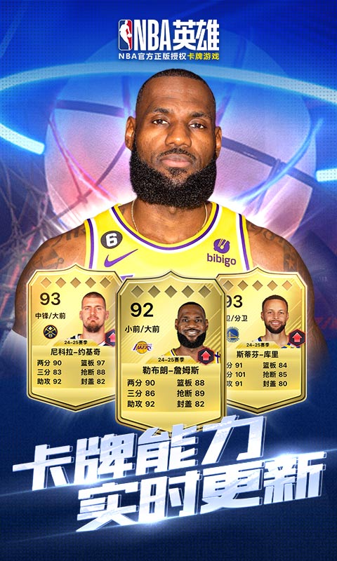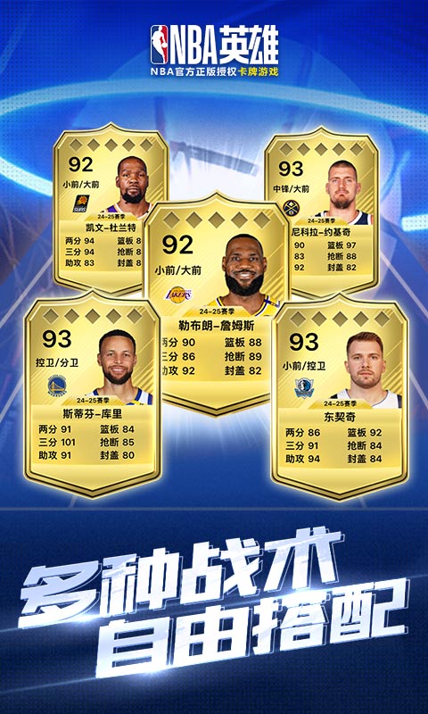 一款以NBA球星为题材,集球星收集、阵容对抗为一体的综合性卡牌游戏。