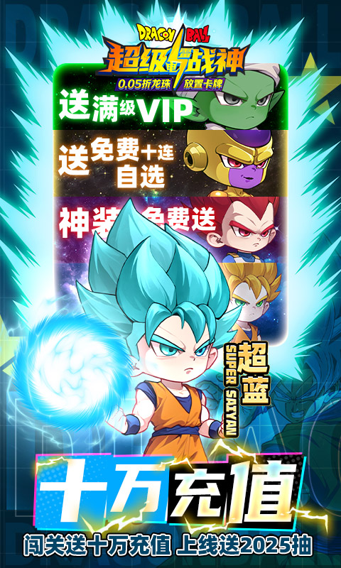游戏特色: 1、龙珠Z,强袭!赛亚人! 2.上线直接送满V,2025抽,超级定制称号,黑白悟空自选箱,还有海量成长资源 3.七日登录豪送海量成长资源,四系精选箱,培养快人一步 4.闯关升级送好礼,达到特定等级可累计领取十万元充值卡 5.免费送十连自选,四次十连任选一,必得五星战士 6.闯关豪送千抽奖励,各有界王神装备免费送,助力争夺全服第一