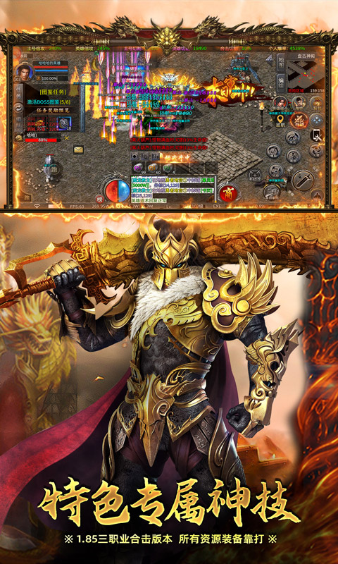 一款1.85三职业合击版本,所有资源装备靠打,物价稳定,生态平衡。